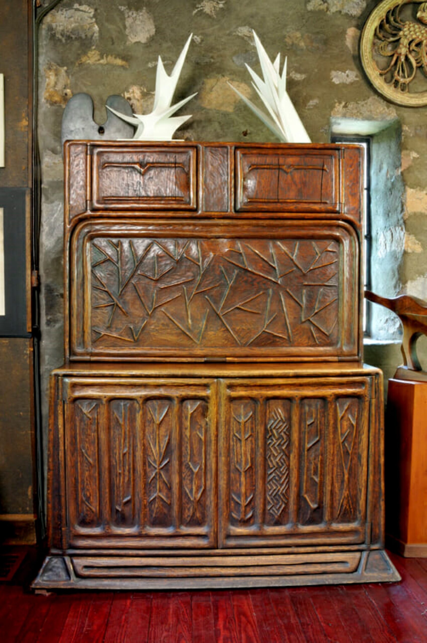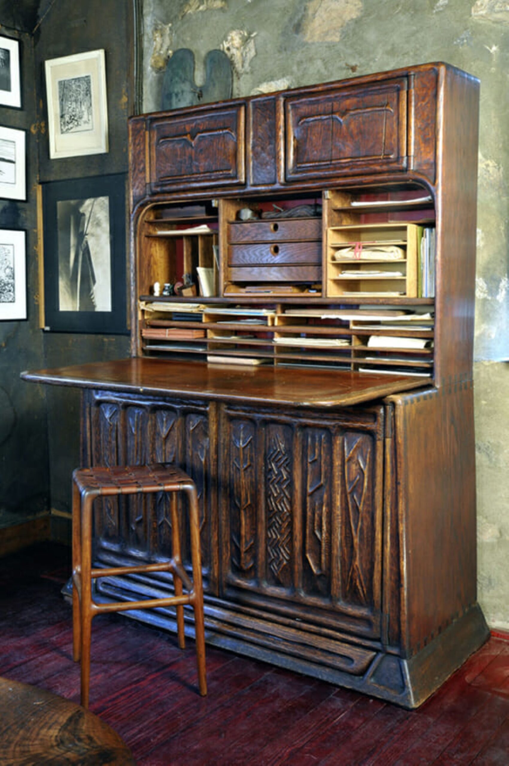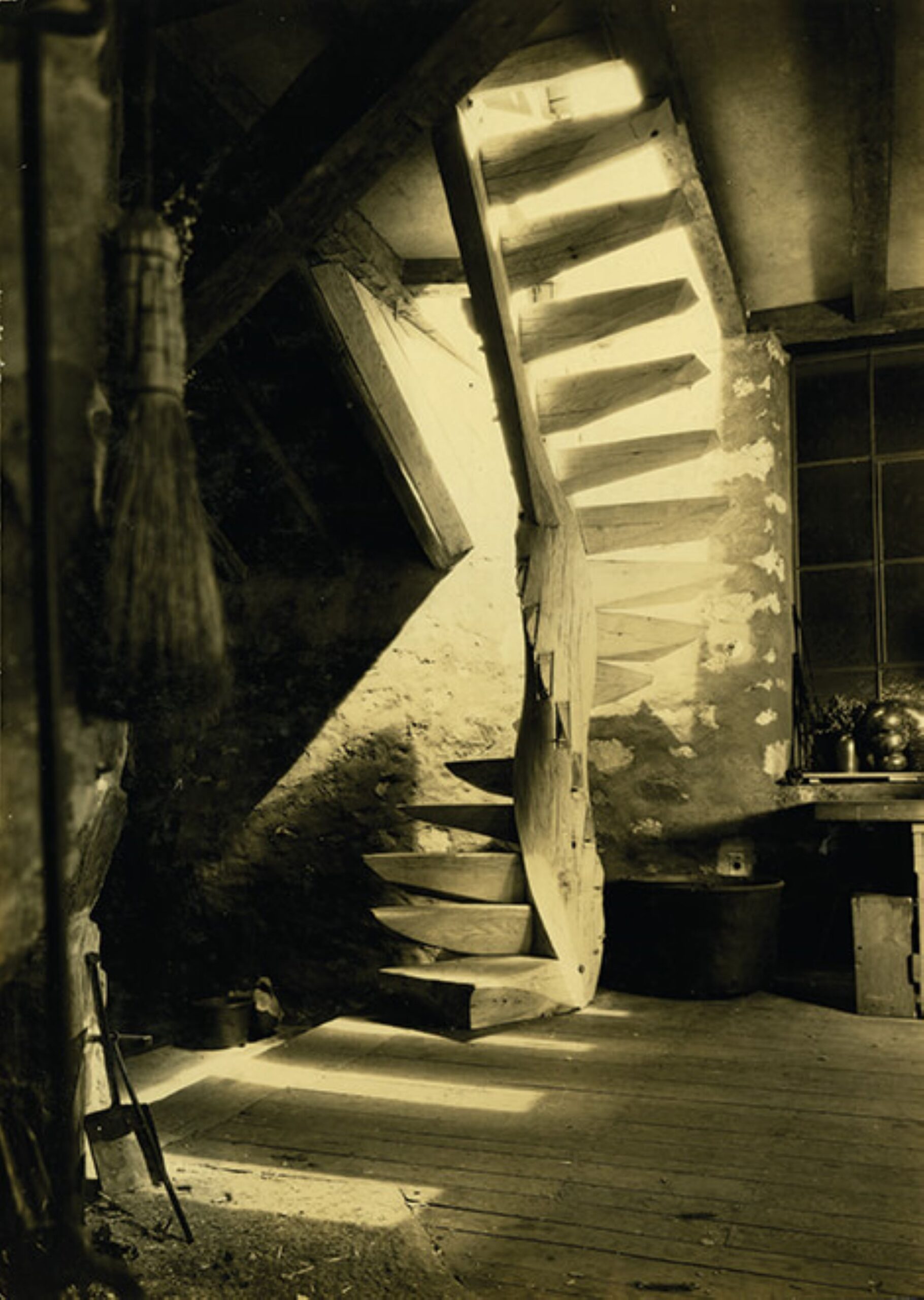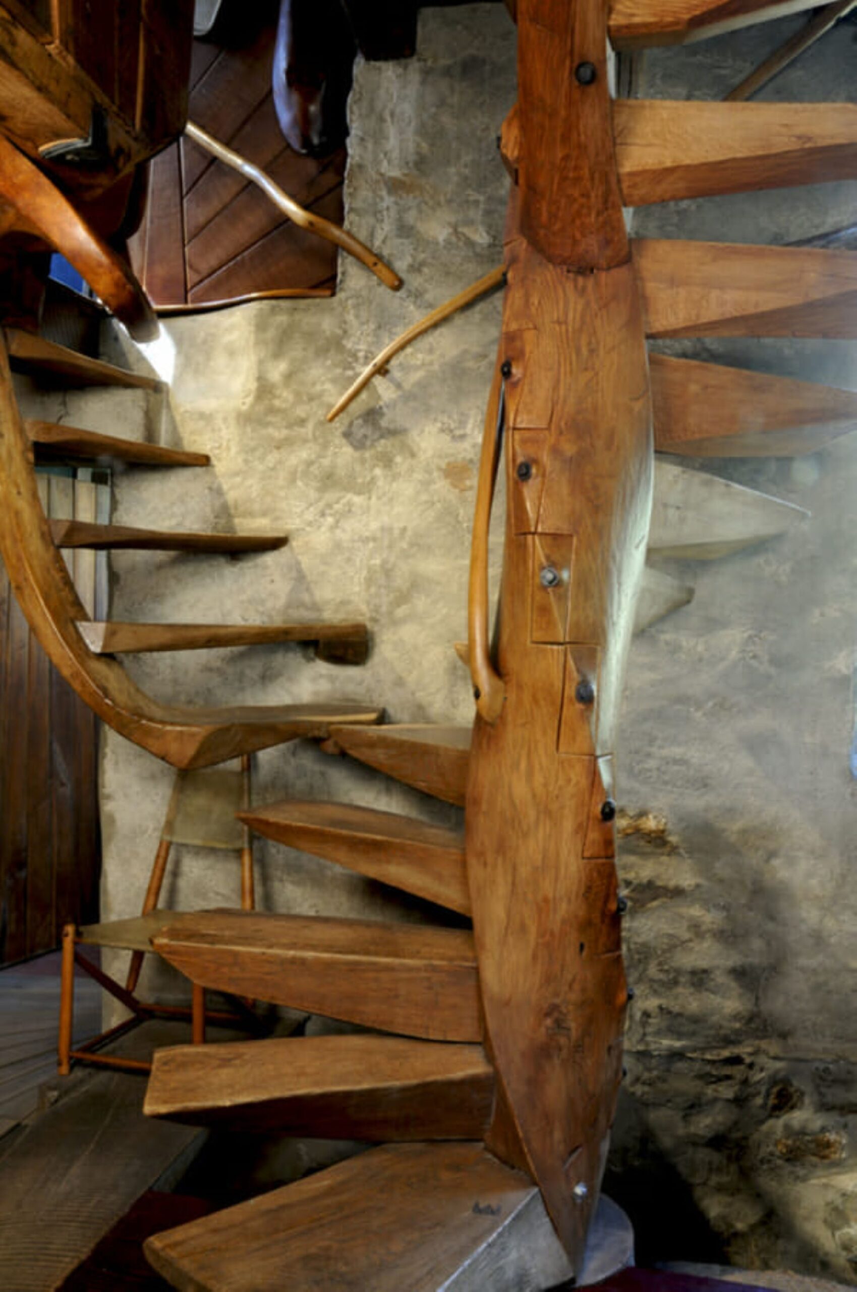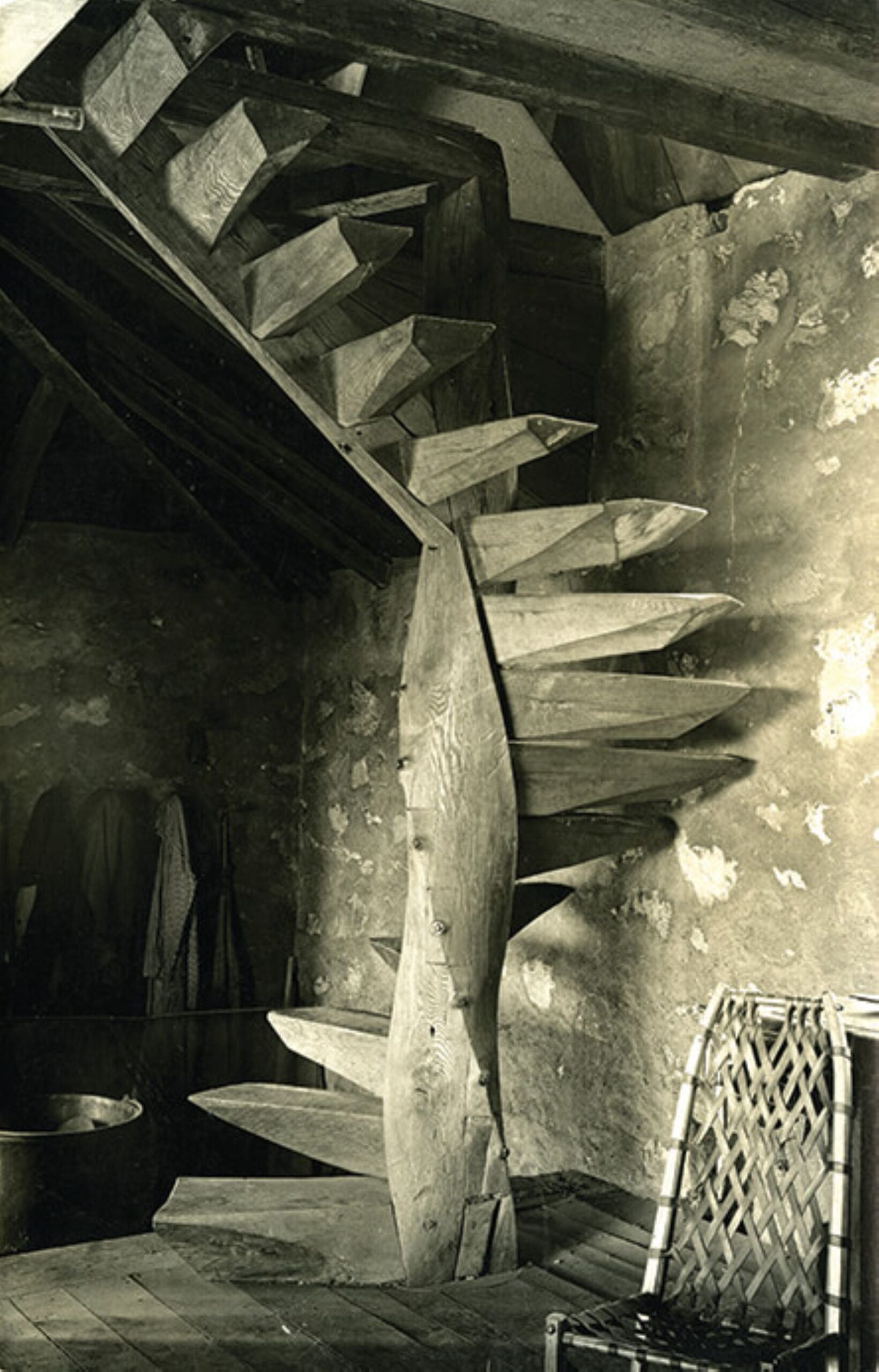 Korábbi cikkünkben is említésre került Esherick egyik ikonikus munkája, a csigalépcső, mely 1930-ban vált a Stúdió kiegészítésévé. Zömök külleme a lebegni látszó lépcsőfokokkal furcsa hatást kelt, összességében pedig jó példája annak, hogy Esherick számára milyen fontos volt az organikus formák kifejezése. A 40-es évek végén egy barátjától kapott masztodon agyar került rá korlátként.