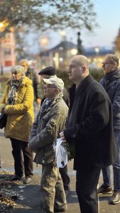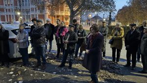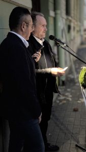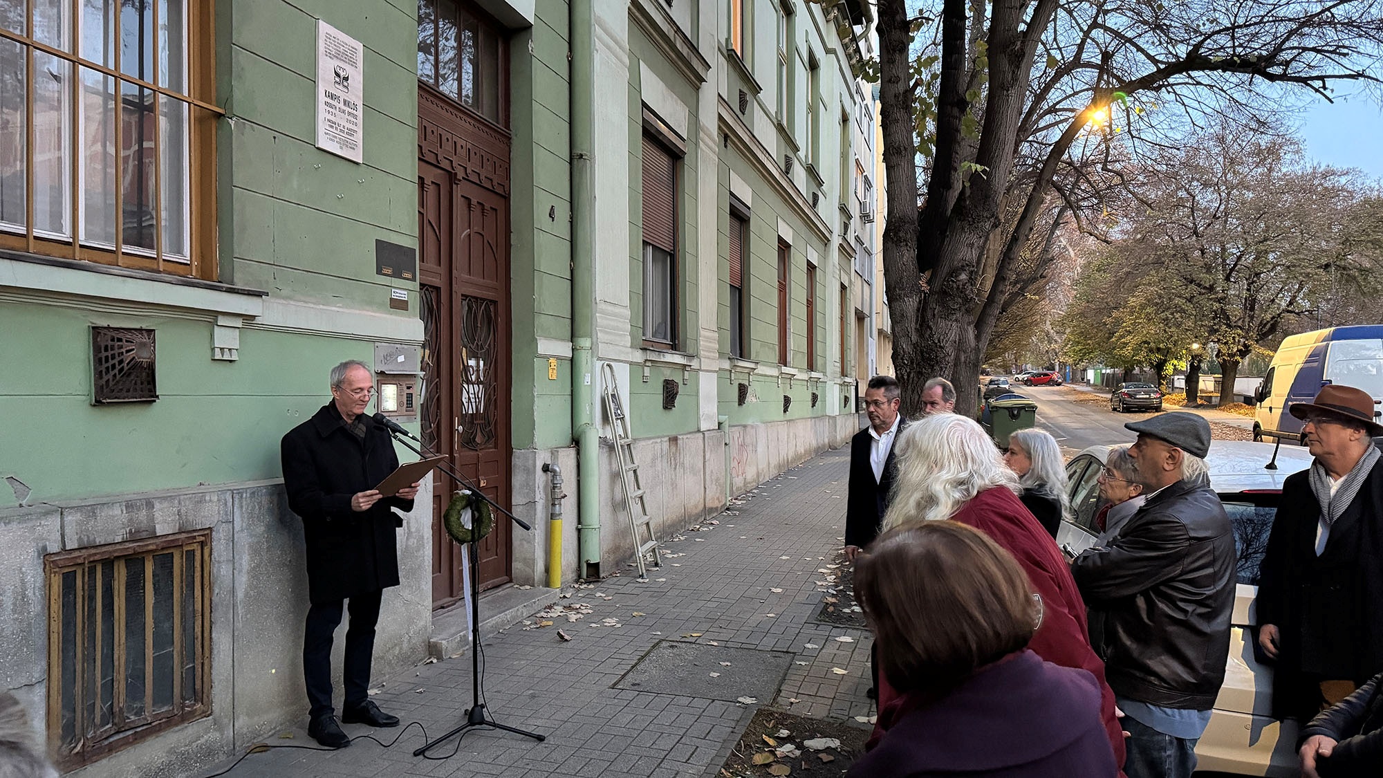 A Lakóház falán elhelyezett emléktábla leleplezésére és megkoszorúzására kerül most sor.