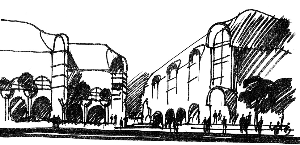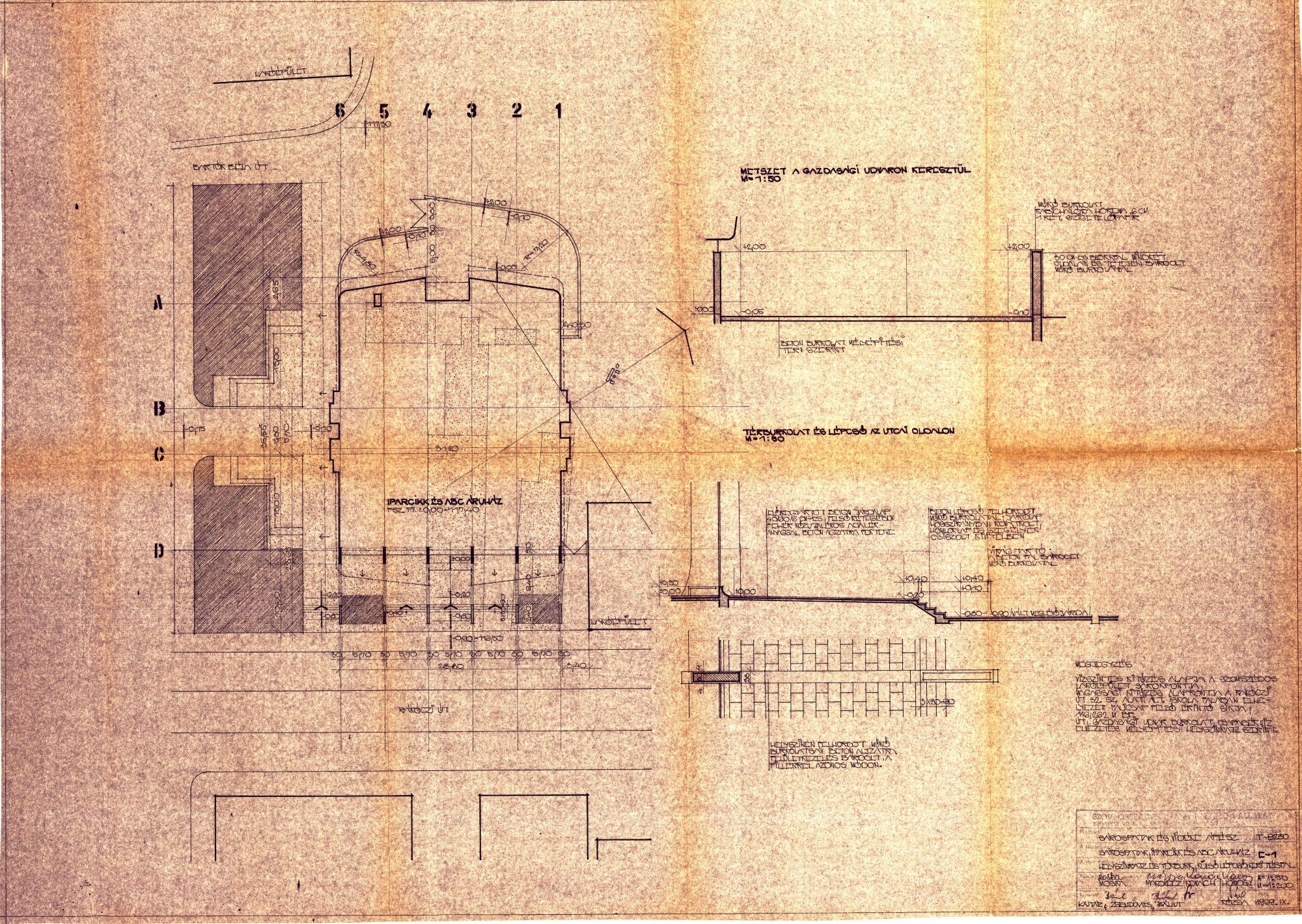A városfejlesztési terv azonban egyértelműen előírta, hogy az áruháznak emeletesnek kell lennie, hiszen az új városközpont ilyen épületekből és létesítményekből áll majd. (2) Az áruház 1973-as átadása után 3 évvel Makovecz Imre beépítési tanulmánytervet is készített a területre (munkatársak: Nagy Ervin, Várlaki Erzsébet). „Sárospatak várkerületéhez vezető sávban, a rétegvonalra helyezve fut a Rákóczi utca, a város fő forgalmi és üzletutcája. (…) Az út rekonstrukciója során az északi házsor egy részét elbontották, másik fele – néhány épület kivételével – díszeit veszítve áll még. A műszakilag tönkrement néhány porta szanálásával a városközpontban szükség van a laksűrűség mértékletes növelésére. Tanulmányunk a már megszokott lakótelepi beépítés helyett városias, keretes beépítést javasol.”