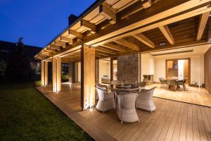 A nyílászárók és üvegfelületek alkalmazása szintén a kortárs életforma igényeihez igazodik. A kert felé nyíló nagy üvegfelületek vizuális kapcsolatot teremtenek a belső és a külső terek között, ezáltal az épület élettere kiterjed a természetre is. Az utca felőli homlokzat ezzel szemben zártabb, intimebb karakterű, amely a privát szféra védelmét erősíti.