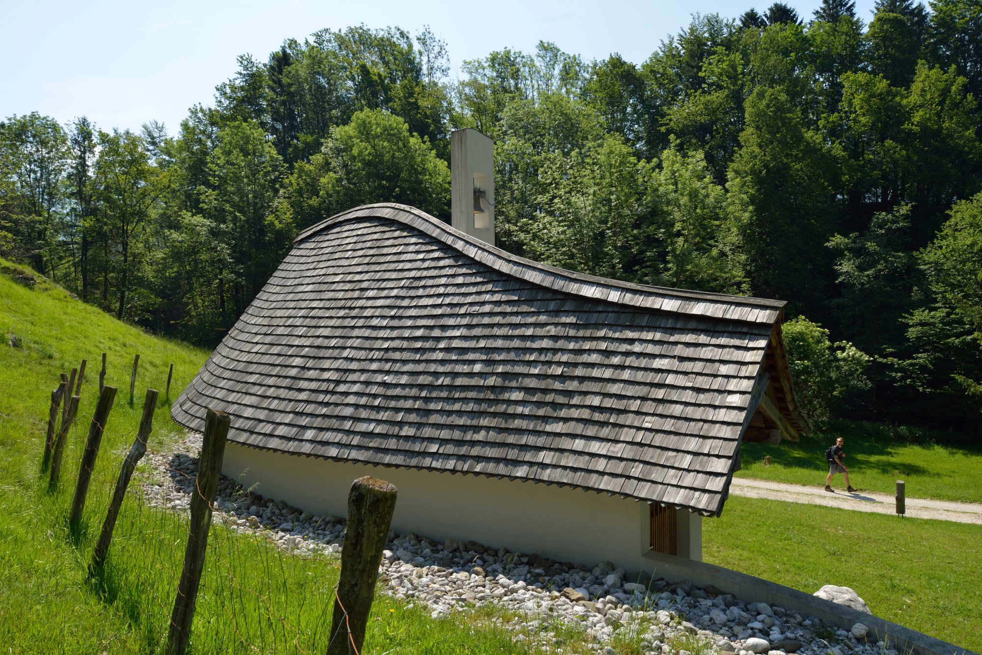 Bevallom, a kápolna képeit figyelve őszinte csodálatom hatására elsiklottam a legfontosabb kérdés mellett, amire csak spekulatív választ tudok adni: miért épít valaki kápolnát a hegyre? Oda, ahol már tényleg csak a jó pásztor és az ő juhai járnak? Erről a szerző sehol, semmilyen formában nem nyilatkozik. Természetesnek veszi, hogy ezt a helyet meg kellett jelölnie. Családi emlékhelynek nevezi, mégis ennél többet alkotott. Nem voltam még hasonló helyzetben, de más önmagam számára is elfogadható választ nem találok: azért építették ezt a kápolnát, mert a hely szelleme ezt kérte. Kell, hogy legyen a helyszínen valami olyan szent kisugárzás, olyan szakrális erő, amit az erre érzékeny lélek (legyen az akár a pásztor, akár az építész) megérzett, és a hívó szót elfogadva épített. Ahogy a Pilisben szokott, a Bovec hegy oldalában is dobbant egyet a Föld szíve. Nincs bizonyítékom, de csak így lehet. Persze mindez fotókon nem látható. Mint minden igazi, nagy építészeti művet, ezt is élőben kell látni és tapasztalni, a képek csak halvány árnyékát mutatják értékeinek…