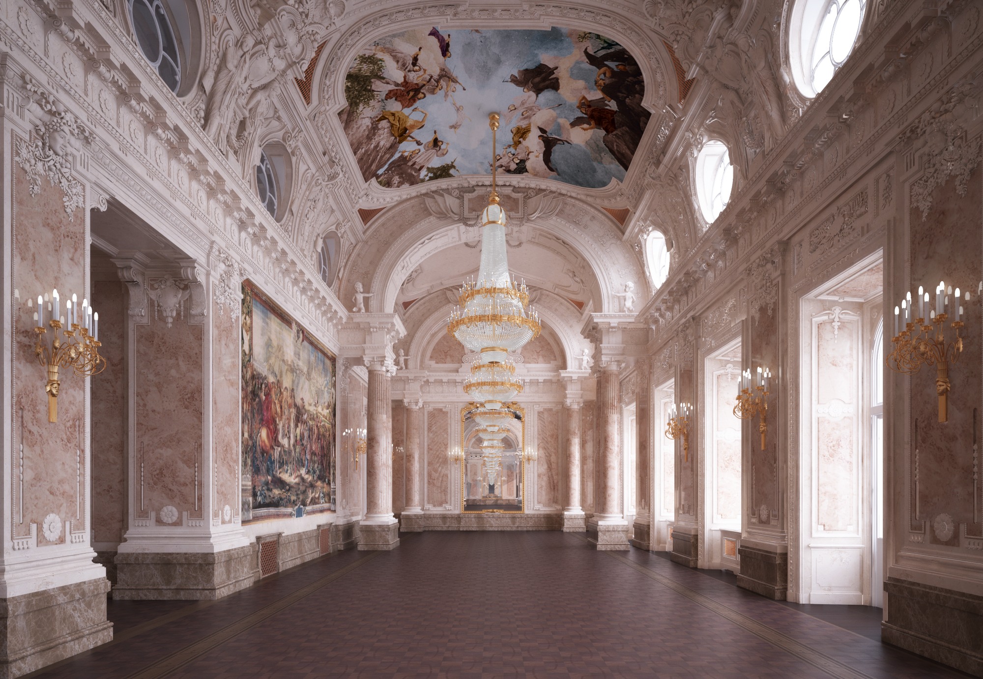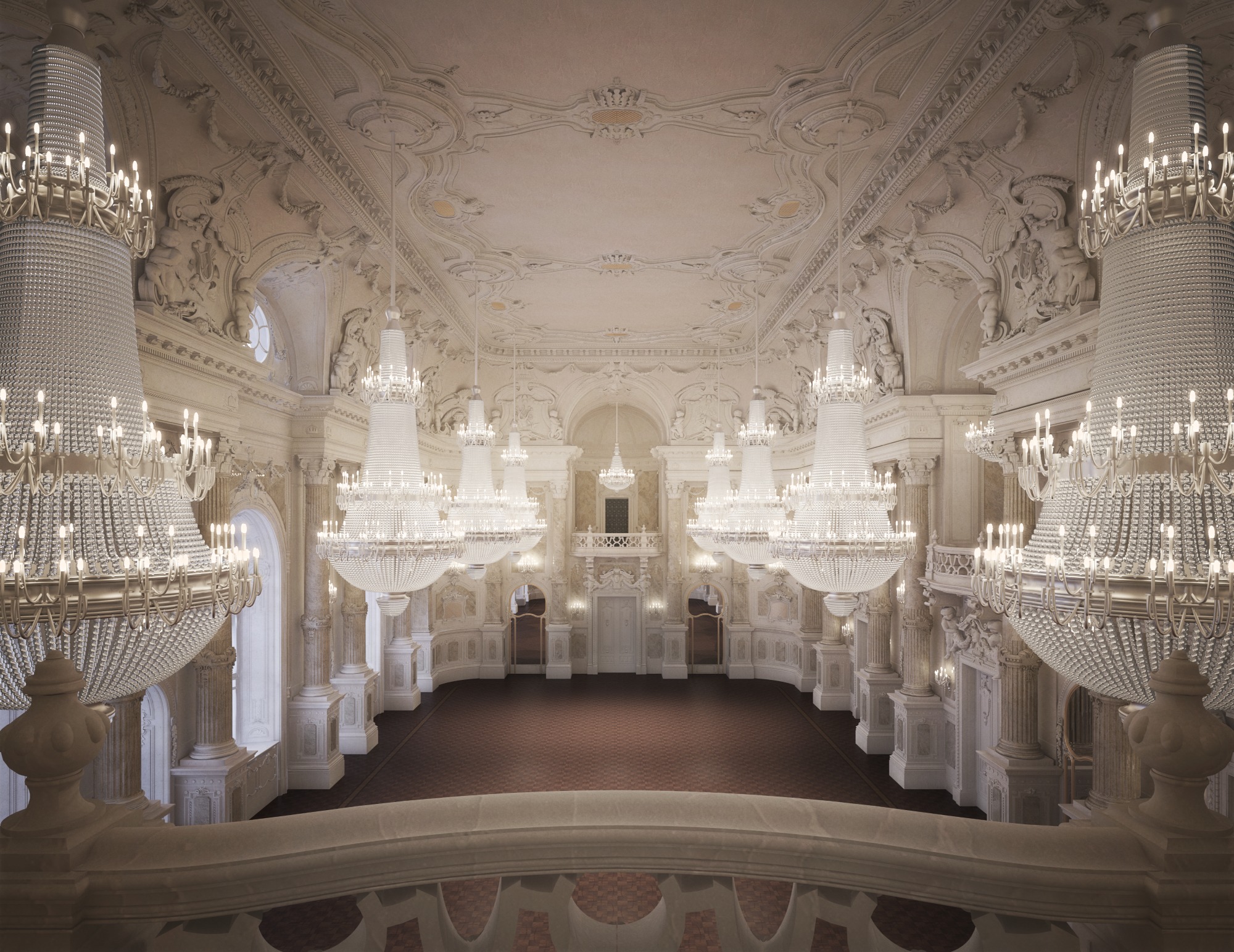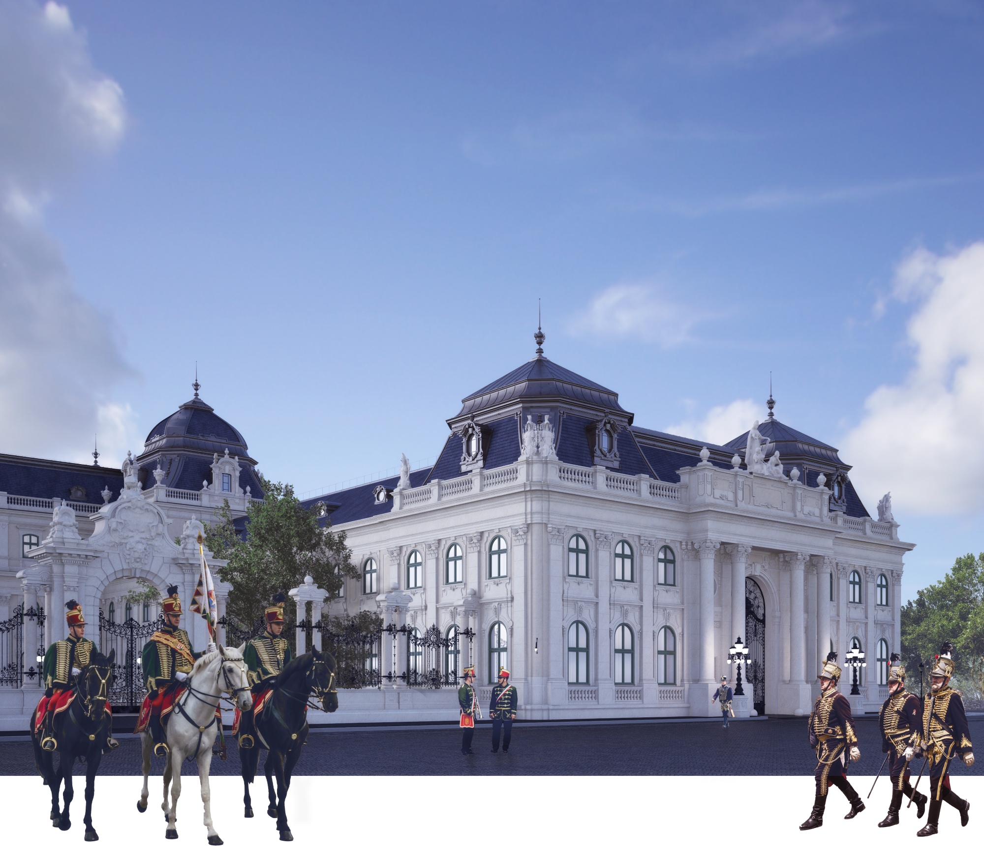 KP: A történeti terek építészeti formanyelve valójában egy olyan kánonnak a része, amely kétezer éves hagyományokon nyugszik. Ezt úgy értem, hogy a Palota 19. századi bővítése főképp olyan neobarokk ízlésvilágban történt, amelynek építészeti formakincse a klasszikus formatan alapszabályait követi. Ezek a szabályok nem pusztán sémák, hanem sok esetben kifejezett törvényszerűségek, amelyek a motívumok, arányok és végső soron akár egész kompozíciók megformálásáról rendelkeznek. A tervezés során számos esetben nem volt elegendően részletes forrás az apróbb részletek megállapításához, de ennek a kánonnak az ismeretében a részletek szinte magukat fejtették meg. Az elmosódott területek kidolgozására is jól lehetett következtetni, és a végső kompozíciót végül ez a mindenre kiterjedő szabályosság hitelesítette.