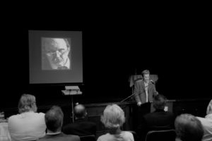 A program első pontjaként Hüse Csaba színművész olvasta fel Makovecz Imre 1977-es kaposvári előadását. A népművészeti mintákról, jel- és szerkezetelemzésekről szóló előadás szövege a kiállított Naplók első kötetében olvasható.