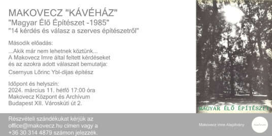 A Makovecz Központ és Archívum Makovecz Kávéháza 2024 tavaszán az 1985-ös Magyar Élő Építészet kiállítás […]