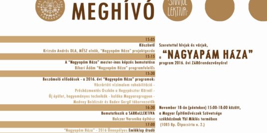 2016. november 18. pénteken délután Magyar Építőművészek Szövetségének – Ybl-termében (1085 Budapest, Ötpacsirta utca 2.) […]
