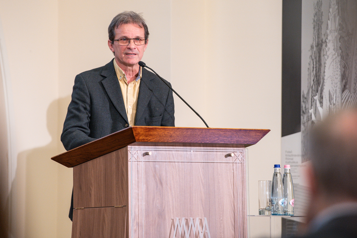 Végezetül Salamin Ferenc (az MMA Építőművészeti Tagozatának vezetője) arról beszélt, hogy érdemes naponta rácsodálkoznunk az univerzum végtelenségére, az abban elfoglalt porszemnyi jelenlétünkre, és akkor megértjük, hogy nem a materiális világ a fontos, egyedül a szellem marad meg. Az építész feladata a kollektív tudattalanban, a bennünk rejlő ősi tudásban létező házakat megépíteni, így betagolódva az akaratba térben és időben.
