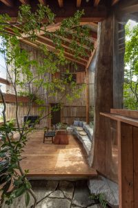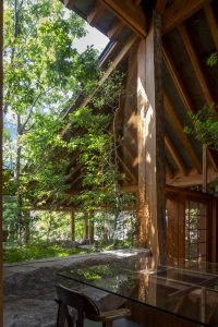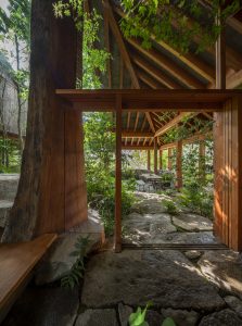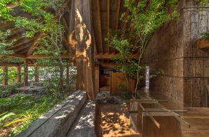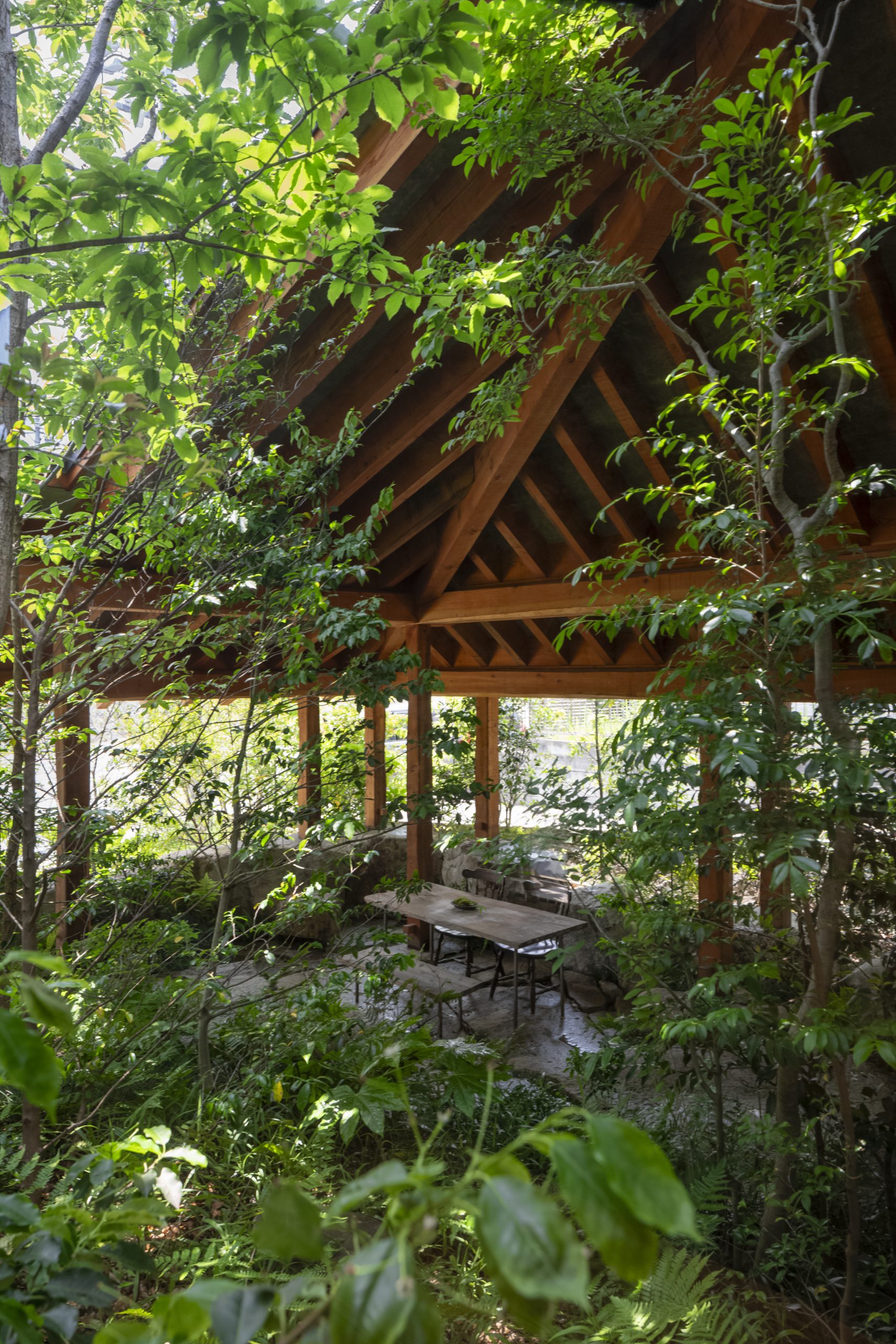 A durva és nyers, ezáltal életet sugárzó anyagokat is aszerint választották ki, hogy azok támogassák ezt a zökkenőmentes kapcsolatot kert és épület között. Bár az épület szerkezete egyszerű, mégis aprólékos és figyelmes építést igényelt. A cél az volt, hogy a benne élőkben a természet és ember közti határ feloldódhasson. Ahelyett, hogy sok részletes rajzot készített volna, Nishiguchi átadta magát a kézműves alkotásnak, a helyszínen kísérletezéssel, sikerek és kudarcok árán hozta létre művét.