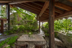 A „kő városa” néven ismert Okazaki egyike Japán három nagy kőtermelő területének. A kővárosként létrejött település több mint 400 éves múltra tekint vissza. A kezdetekben az Usu-kő elnevezésű gránitot bányászták itt, amelyet később sírkövek, kőlámpások és szobrok gyártása egészített ki, felvirágoztatva a helyi ipart. Mikor Nishiguchi ellátogatott a kőbányába, az évekkel korábban kibányászott köveket a hegyoldalon szétszóródva, mohával benőve találta. Ennek az időtálló hegyvidéki tájnak otthonukban való újrateremtése vált a projekt kiinduló ötletévé.