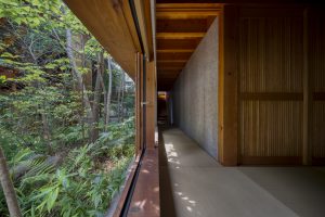 Amikor leülünk a külső és belső tereket összekötő kőpadra, a fákon átszűrődő szelíd napfény és lágy árnyékok áradnak be. A táj tele van könnyeden zizgő ágakkal és levelekkel, fák virágoznak, madarak csiripelnek és játszanak a víztálukban. Olyan természettel harmóniában lévő tér ez, ahol környezetünkből minden beleolvad a fizikai érzékelésünkbe. Nishiguchi úgy gondolja, hogy olyan korban élünk, amelyben újra kiemelt figyelmet kell fordítanunk arra a frissességre, melyet egy térből öt érzékszervünkön keresztül befogadhatunk, ezt pedig nem lehet pusztán logikus gondolkodással elérni. A Föld Ház, ahogy arról neve is árulkodik, épp ezt a hatást éri el, a természettel való megbékülést, a hétköznapokon keresztül az abban való teljes feloldódást.