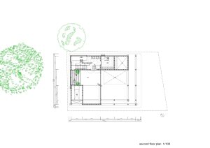 A helyszín mintegy 15 perc autóútra a kőbányától, lakott területen található. A telek déli irányban az útra néz, északra a szomszédos lakóépületek és egy általános iskola dús növényzetű kertjei határolják. Ahhoz, hogy ezt a kilátást kihasználja, Nishiguchi a japán építészetre jellemző átlátható teret kívánt létrehozni. Először egy udvart helyezett el a telek közepén, majd az udvar körül, az óramutató járásával megegyező irányban rendezte el a külső teret, a fél-külső teret, a fél-belső teret és a belső teret. A szakaszok mindegyike olyan transzparens tér, amely fokozatosan vezet át a kertből az épületbe. A ház kompozíciója emellett finom átmenetet képez a ház egyik oldalán húzódó út és a másik oldalon elterülő táj között. Különösen a fél-külső tér és a fél-belső tér ér el kétértelmű hatást, fontos szerepet játszva a kert és az épület finom összekapcsolásában. Az épület madártávlatból, az utca felől nézve magába zárul, a belső kert tetőből kirobbanó fái szinte elhagyatottnak, a természet által visszahódítottnak láttatják, míg az épület túloldalára kerülve az fokozatosan kinyílik. A környező lakóépületek közelsége a mélyen lenyúló tetőnek köszönhetően belülről nem érzékelhető, oázis hatását kelti a városban.