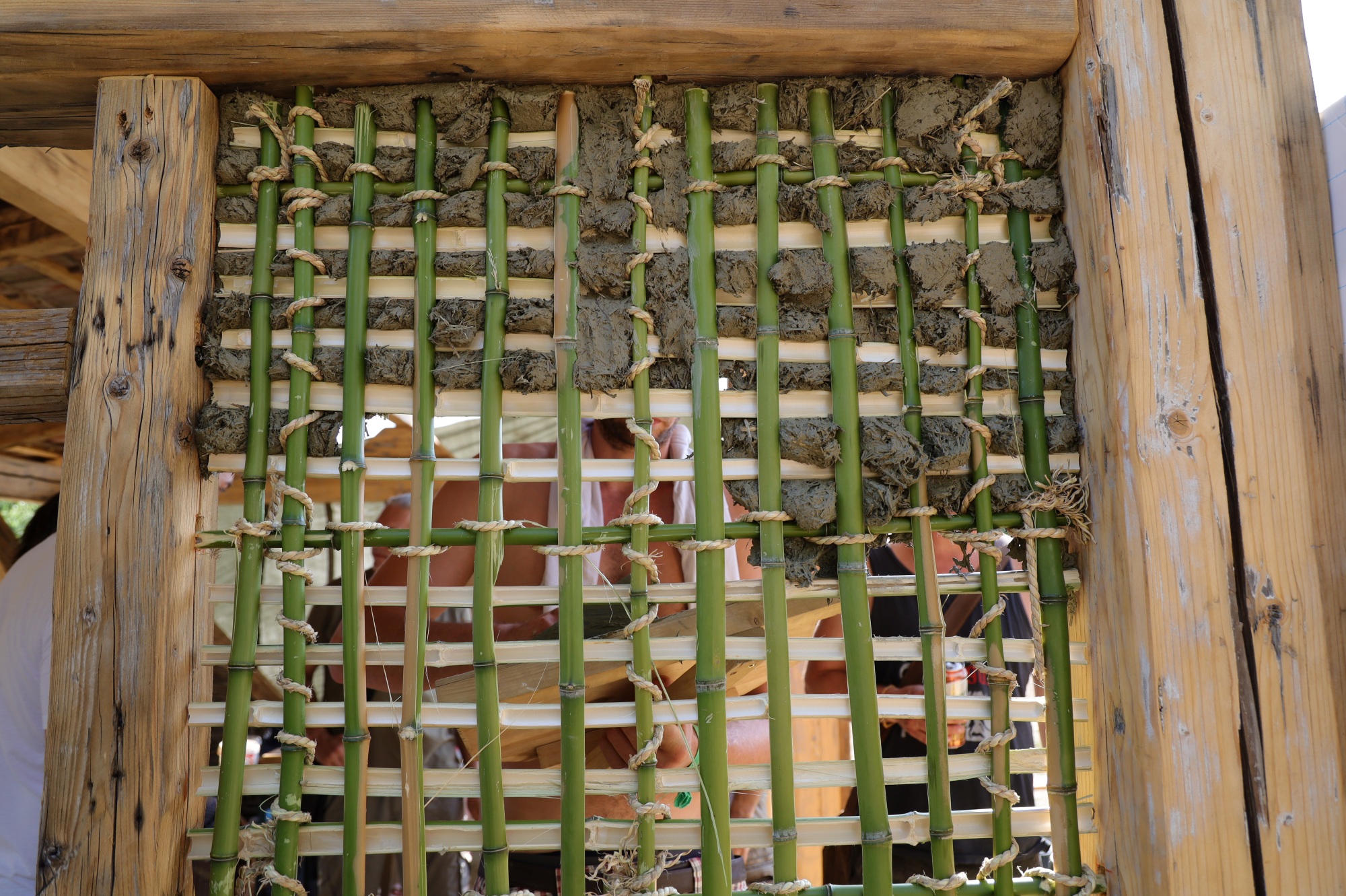 A japán fal műhelymunka vezetője Barna Gergely, jelenleg japánban élő, magyar származású építész volt. A hagyományos japán technikával előállított fal fa keretben készült, bambusz vázon, fermentált vályog felhasználásával. Ez a magyar építési technikák közül leginkább a paticsfalhoz hasonlítható, ám itt a vesszőfonat helyett bambuszból és rizskötélből készült rácsozatra kerül a vályogvakolat.