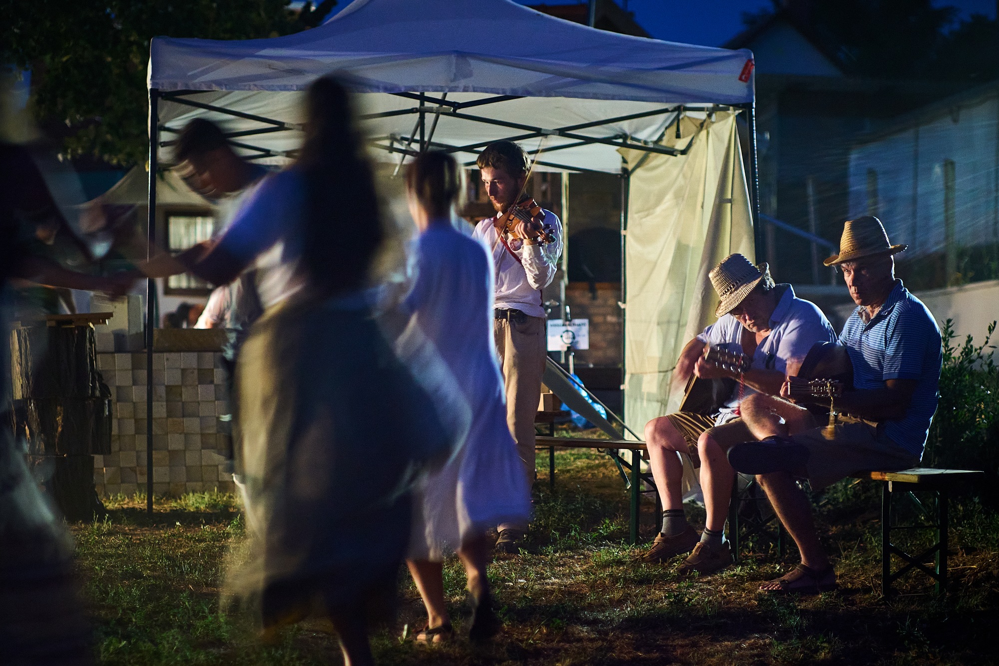 A filmvetítés után a Csergő banda jóvoltából élő zenés moldvai táncházzal ünnepeltük a vályogos barátokkal való (újra)találkozást.