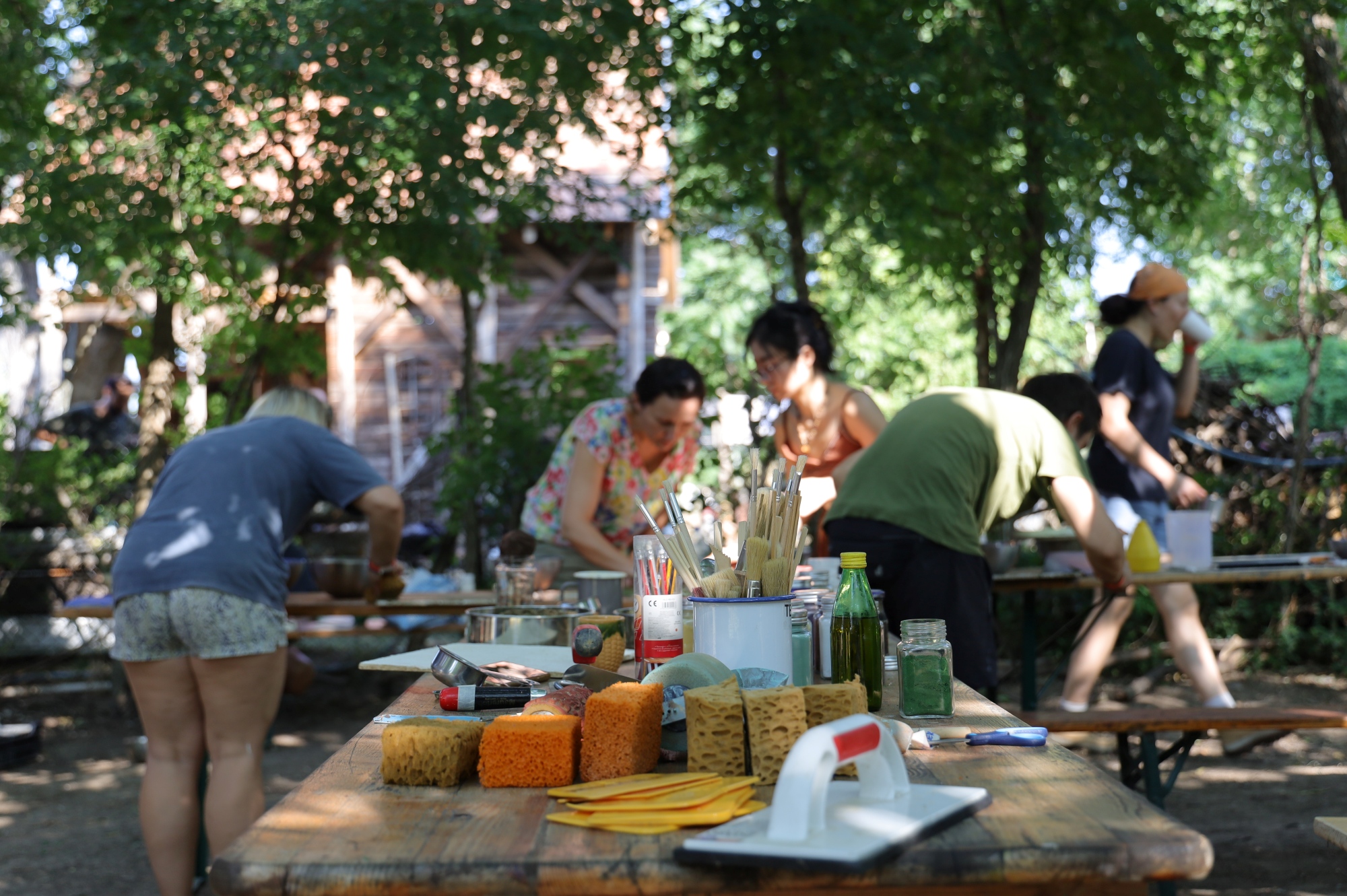 A Nyári Egyetem hétvégi műhelymunkáit a hazai oktatócsapat tartotta: a vályog sgraffito, tadelakt és japán fal technikákat sajátíthatták el a résztvevők.