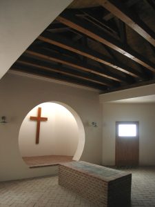 SL: Egy templom, persze nevezheted kápolnának is. Egy szakrális tér, ahol megkereszteltek, amikor megérkeztünk és a búcsúzás tere, amikor elmegyünk. Remélve szabadon, ahogy jöttünk.