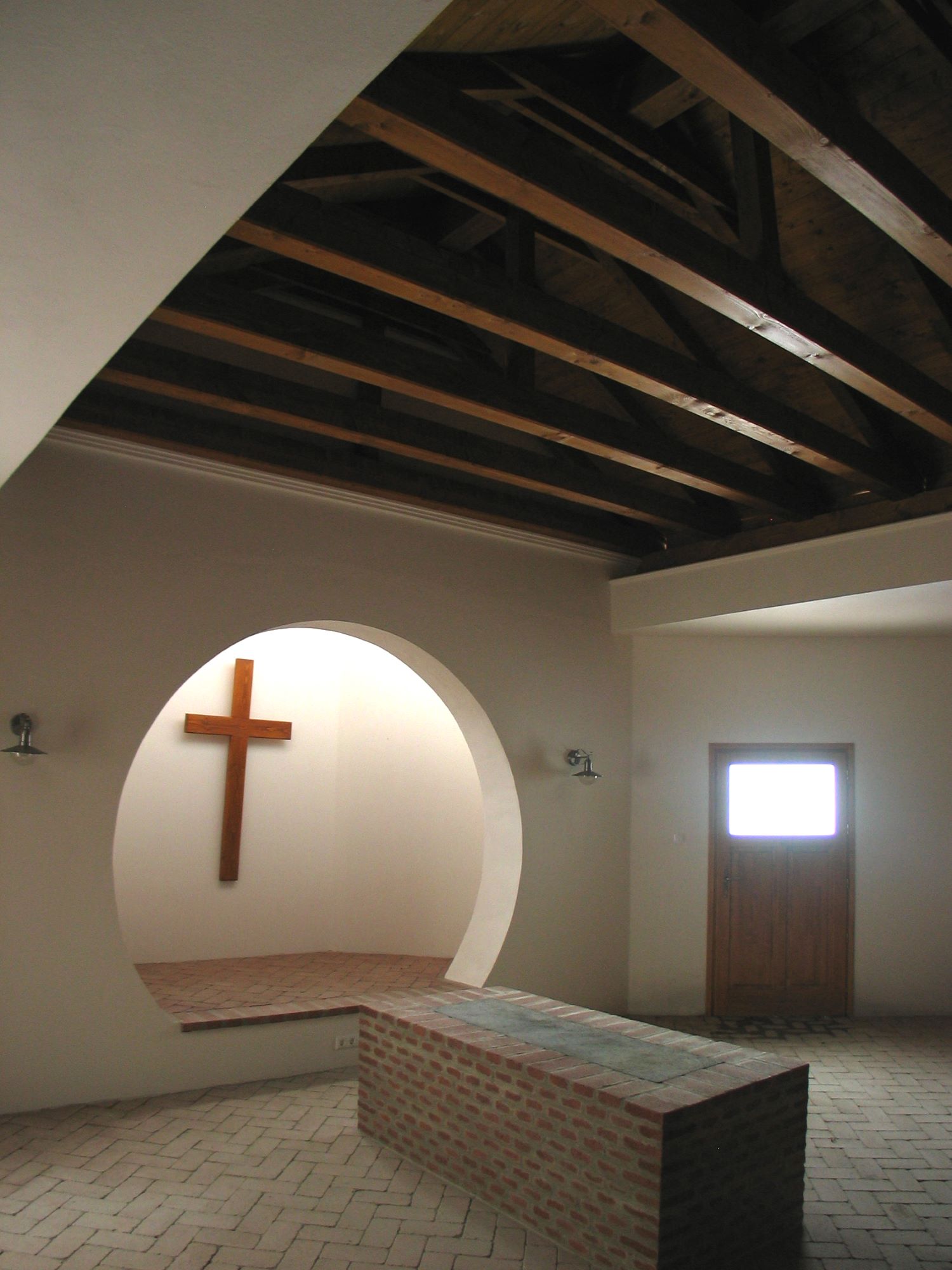 KL: Egy tanítványodtól, aki ravatalozó tervezésével foglalkozott, megkérdezted, hogy feküdt-e már fel egy általa elgondolt ravatalozó asztalára? Ma már tudom, hogy meghökkentő kérdéseiddel ki akartál minket zökkenteni a megszokott és kitaposott építészeti ösvényről és valódi átélést követeltél meg. Te mit tartasz szem előtt, ha szakrális épületet, esetleg egy ravatalozót tervezel? Mi volt a jászberényi ravatalozód alapgondolata?
